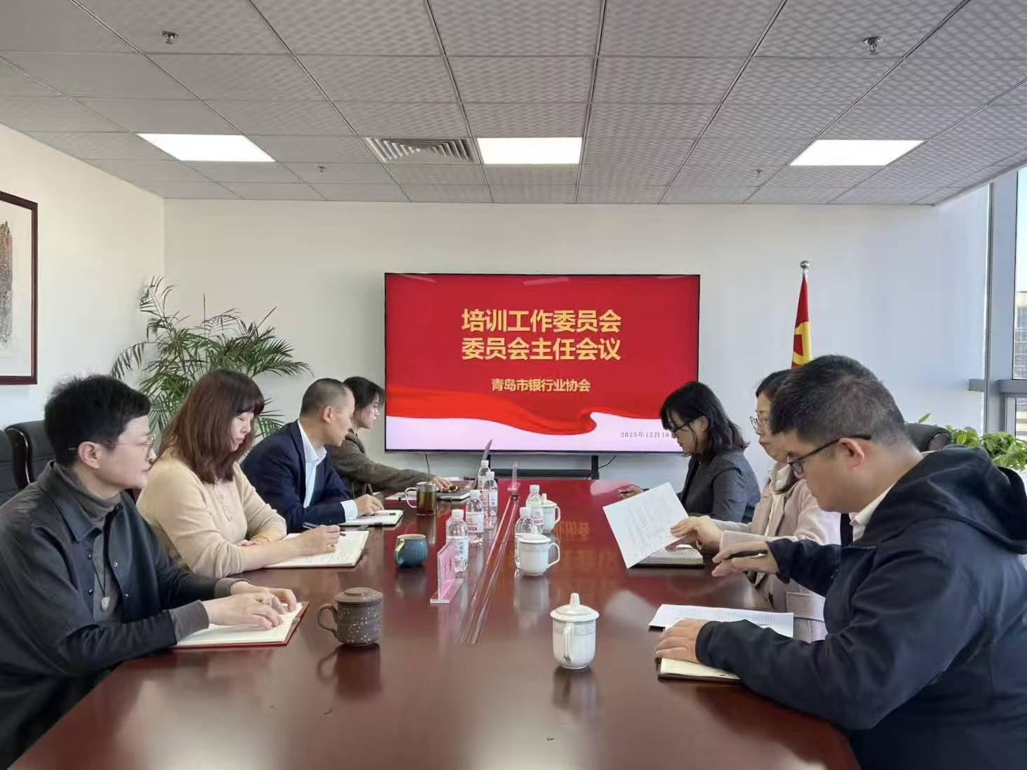 2025年12月18日,青岛市银行业协会召开培训工作委员会主任单位工作会议。主任单位中国邮政储蓄银行青岛分行、副主任单位青岛农商银行相关负责人参会,协会专职副会长孙辉、秘书长王志纯出席会议。