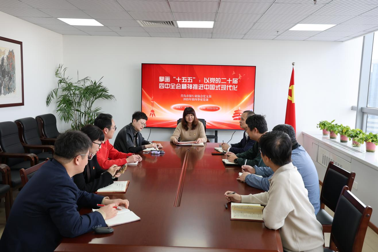 12月18日,青岛市银行业协会党支部组织开展第四季度党课活动。党支部书记孙辉同志以《擘画“十五五”:以党的二十届四中全会精神推进中国式现代化》为题讲授专题党课,支部全体党员参加学习。