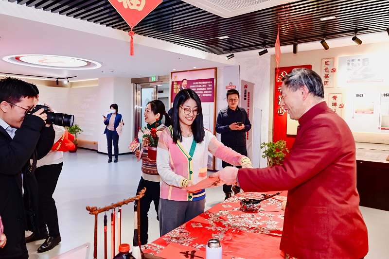 笔墨丹青写春意,妙剪生花传祝福。活动现场暖意融融、翰墨飘香,一幅幅格外醒目的“中国红”春联和洒金福字将新春的祝福浓缩于一笔一划之间,营造出温馨热烈的新春氛围。“龙腾四海春光好,福满九州喜气浓”“龙舞乾坤、春回大地”一幅幅寓意吉祥的春联,一个个形态各异的“福”字跃然纸上,给这个乍暖还寒的时节,带来一缕缕暖意,拿到春联和“福”字的职工也是喜上眉梢、连声称赞。