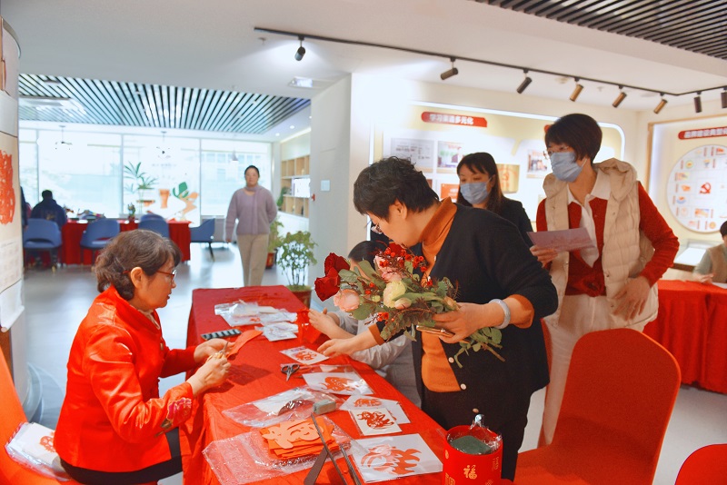 剪窗花活动吸引了不少手工爱好者参与,大家一边与非遗剪纸传承人学习剪窗花的步骤和方法,一边折叠剪裁,巧手翻飞、纸随剪转,一张张普通的红纸变成了“福”、“春”、“喜”、十二生肖等各式图案,不仅承载着大家最朴素的新年愿望,还传承了中华几千年的文化智慧。
