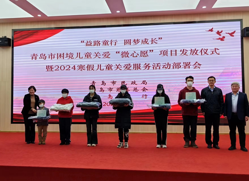 日前,青岛市民政局、青岛市慈善总会、青岛银行共同举办“益路童行 圆梦成长”青岛市困境儿童关爱“微心愿”项目发放仪式为孩子们圆梦。近期,青岛市多名儿童督导员、儿童主任将开展“上门圆梦”行动,真诚送温暖,真心护成长。“益路童行 圆梦成长”青岛市困境儿童关爱“微心愿”项目由青岛银行发起并捐资100万元,旨在为全市孤儿、事实无人抚养儿童、重点困境儿童、低保边缘家庭儿童和农村留守儿童圆梦“微心愿”,提升困境儿童家庭的获得感、幸福感。项目自启动以来,收到了孩子们关于服装、学习体育用品、课外书籍、学习桌椅等多种多样的心愿,本次将为1800余名孩子逐一圆梦。