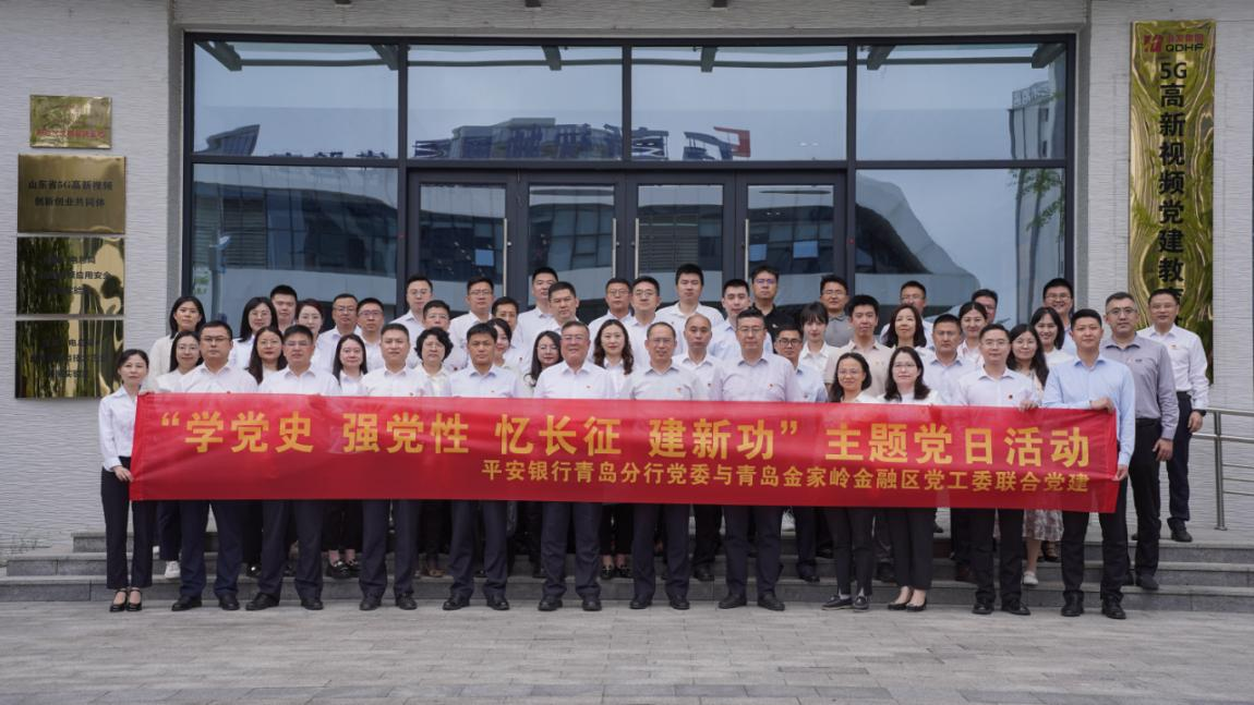 为纪念红军长征出征90周年,庆祝中国共产党成立103周年,进一步推动习近平新时代中国特色社会主义思想转化为坚定理想、锤炼党性和指导实践的强大力量,6月5日,平安银行青岛分行党委联合青岛市崂山区金家岭金融区党工委,前往青岛5G高新视频党建教育基地参观学习,共同开展“学党史 强党性 忆长征 建新功”庆七一党性教育主题党日活动。平安银行青岛分行党委书记、行长李伟杰,崂山区委常委、金家岭金融区党工委副书记、管委常务副主任黄应胜共同出席活动。