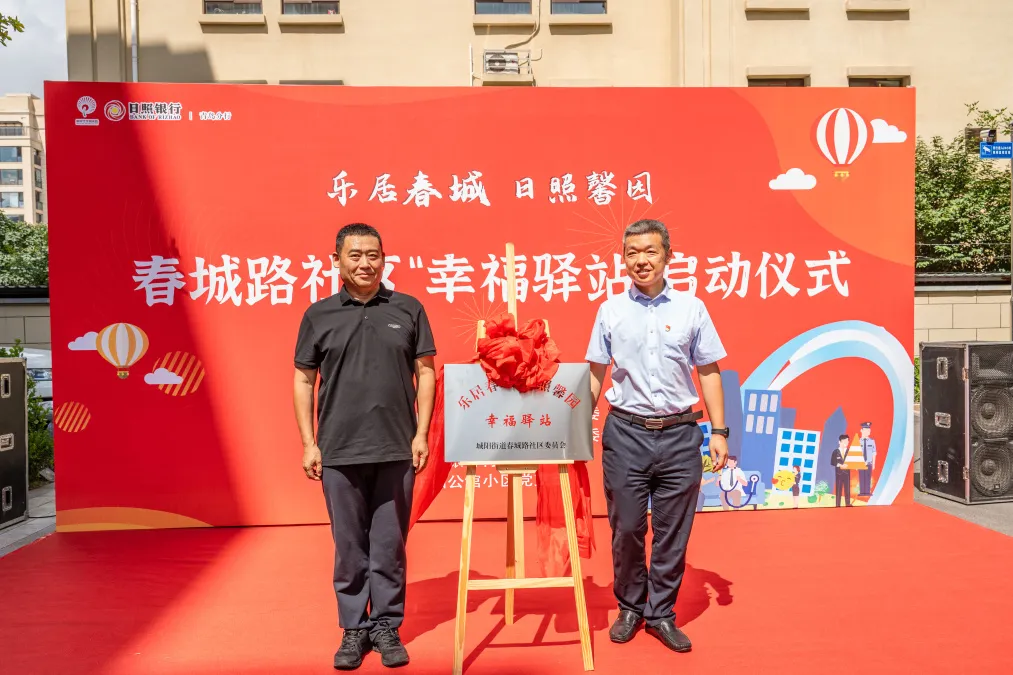 7月25日上午,幸福驿站启动仪式在正阳公馆小区举行,城阳街道党工委委员、武装部部长宋时雨与日照银行青岛分行党委委员、副行长何帅为活动致辞,共同为“乐居春城 日照馨园”幸福驿站揭牌,并为幸福驿站的所有“红色合伙人”颁发了牌匾。