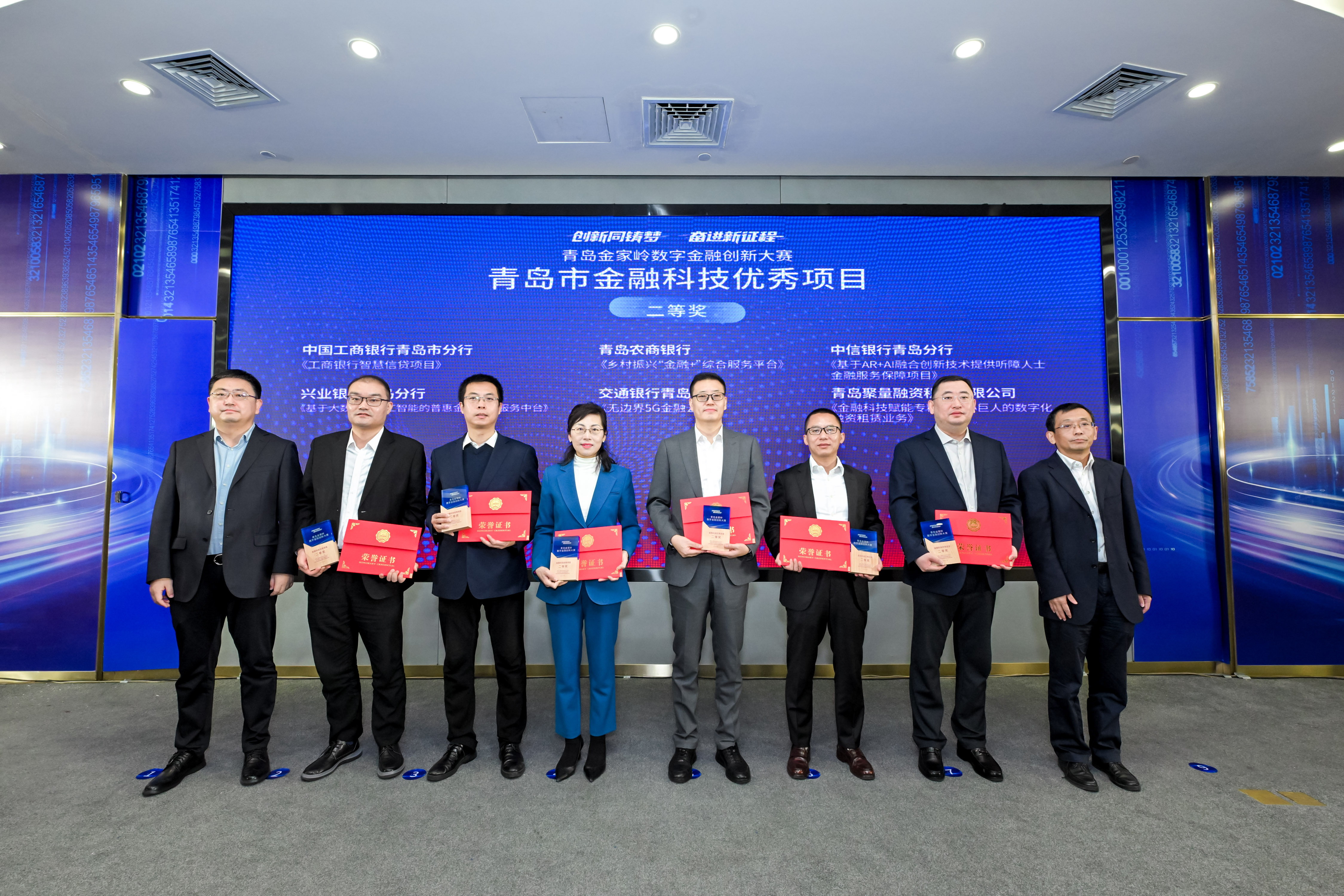 青岛金家岭数字金融创新大赛由中国人民银行青岛市中心支行、青岛市地方金融监督管理局、青岛金家岭金融聚集区管理委员会联合组织开展,对支持青岛市实体经济,强化金融科技创新能力,赋能经济发展和城市发展的金融机构予以奖励。兴业银行青岛分行报送的两个项目在35家金融机构提报项目中脱颖而出,充分体现出市场及权威机构对该行积极推动数字金融创新成果场景化落地的认可与肯定,也展现了该行近年来转型创新取得的丰收成果。
