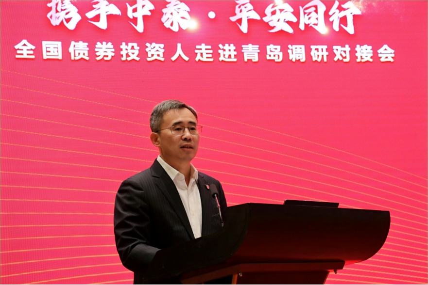 为搭建国有企业与机构投资人交流对接平台,提振投资人信心和预期,推动青岛市经济高质量发展,4月18日,青岛市举办了全国债券投资人走进青岛调研对接会,会议由平安银行与中泰证券联合主办,青岛市地方金融监管局、市国资委指导,上海证券交易所支持,邀请国内银行、保险、资管、信托、基金等130余家全国债券投资机构来青,与全市70余家国有企业面对面交流。青岛市委常委、副市长王波、上海证券交易所债券业务部副总监孙治山、平安银行首席资金执行官王伟、中泰证券党委副书记、监事会主席郭永利出席会议并讲话。一同出席的还有平安银行战略发展部董事总经理张杰、青岛分行行长李伟杰、团金会规划运营中心副总经理阎永婷、投资银行事业部总裁助理张盈啸、金融同业事业部营销总监华一等相关领导。