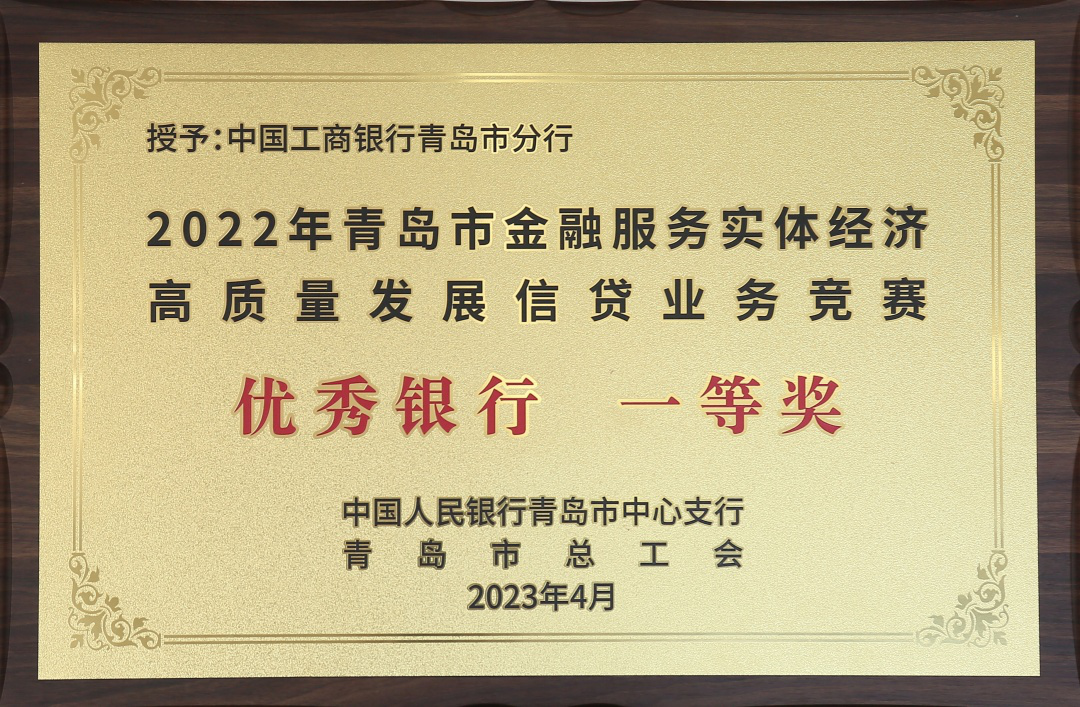 2022年,青岛工行成为青岛市贷款规模率先跨越3000亿元大关的商业银行,实现“3000人·3000亿”的历史性突破,年度贷款增量历史首超500亿元,总量和增量同业“双第一”,获评青岛市金融服务实体经济先进集体。