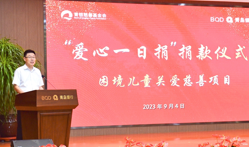 活动现场,青岛银行董事长景在伦首先宣读了《倡议书》,他指出,慈善事业是改善民生、促进和谐的崇高事业,是凝聚爱心、播撒温暖的民生工程。青岛银行历来坚持品牌向善,秉承“源于社会、回馈社会”的理念,积极投身公益活动,担当社会责任。社会需要慈善,慈善事业需要全社会的参与,希望广大员工积极作为,踊跃参与“爱心一日捐”活动,共同传承青岛银行的关爱文化,弘扬中华民族“扶危济困、乐善好施”的优良传统。