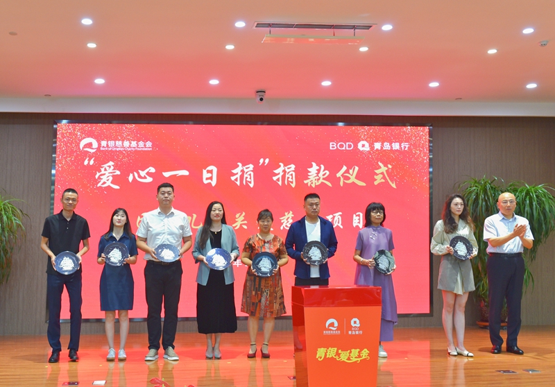涓涓细流可成海,点滴爱心凝聚力量。活动现场,青岛银行领导干部带头捐赠,全体员工积极响应、踊跃捐款,纷纷走到捐款箱前,将一份份爱心善款投入到捐款箱内,用实际行动践行自己的关爱之心。据介绍,本次“爱心一日捐”筹集的善款,将全部汇入青银慈善基金会,用于公益事业。从中,青岛银行将率先拿出100万元,用于青岛市“困境儿童关爱慈善项目”,帮助全市1000名孤寡儿童、困难家庭及农村留守儿童实现“微心愿”,提升身处困境中的孩子们的获得感和幸福感。本次活动,青岛银行还邀请到和达控股集团有限公司、特锐德电气股份有限公司、青岛天一仁和控股集团有限公司、青岛皇家美孚食品有限公司等爱心企业,以及初先生、武女士、宋女士、玄女士等爱心客户代表现场参加,共同助力慈善事业的薪火相传。随后,青岛银行为其颁发了纪念品,以感谢他们对慈善事业的倾囊相助,以及对青岛银行的信任支持。