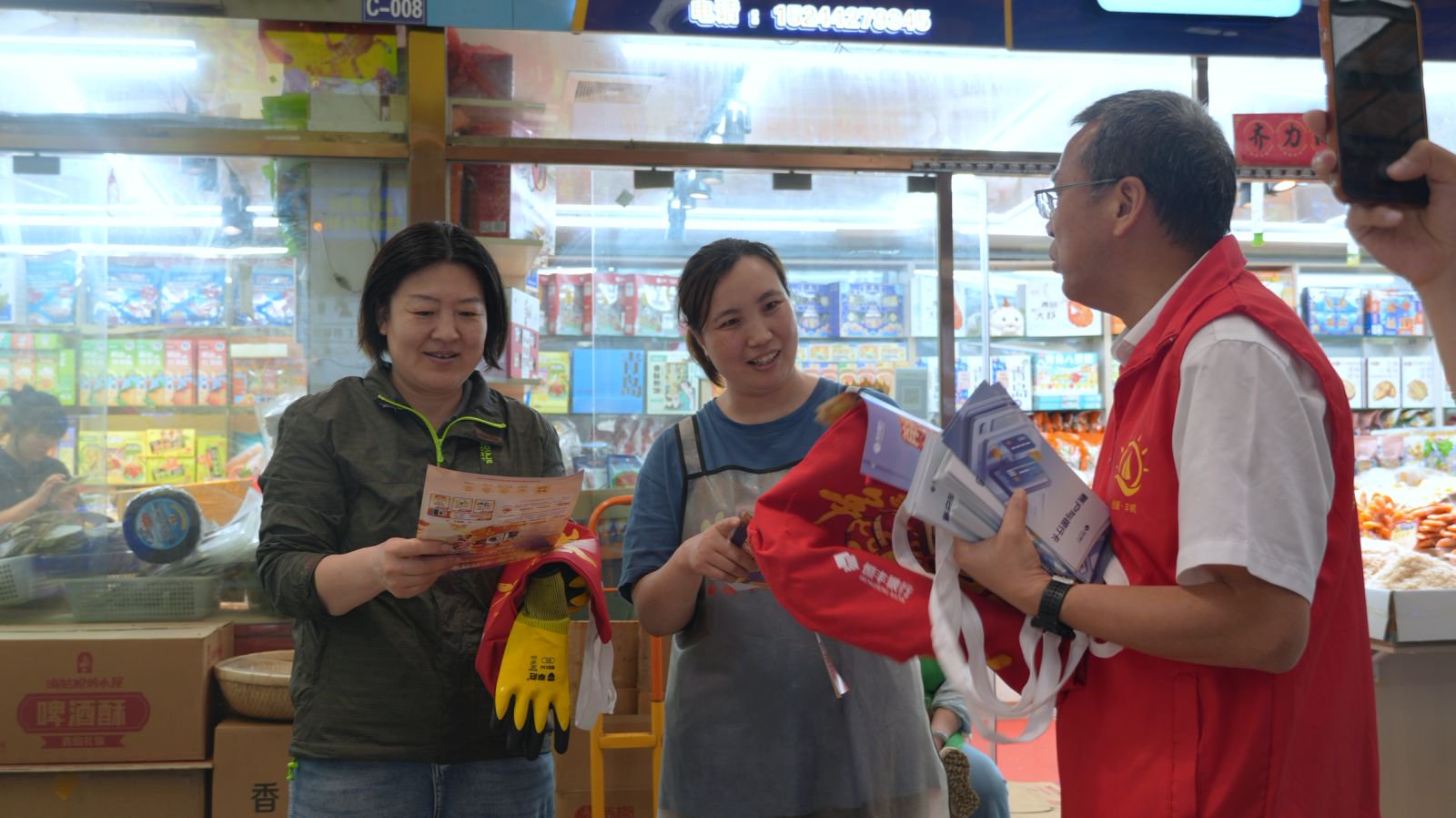 清晨的团岛市场内,“金融宣教进市场 守护幸福千万家” 主题墙格外醒目。各银行采取“流动宣教 + 定点服务”模式:兴业银行在海鲜摊前提醒商户防范转账诈骗;平安银行用方言拆解 “养老投资骗局”;光大银行与北京银行在入口设“金融知识补给站”,提供饮水与反诈手册。工商银行工作人员现场为市民讲解金融知识,农业银行、中国银行工作人员手持“反诈标语手举牌”,与市民互动合影并发放宣传册,潍坊银行的一句“陌生链接不点击,天上馅饼是陷阱”顺口溜引得阵阵欢笑;建设银行员工化身“金融菜贩”,将“金融知识手册”与新鲜蔬菜捆绑赠送。