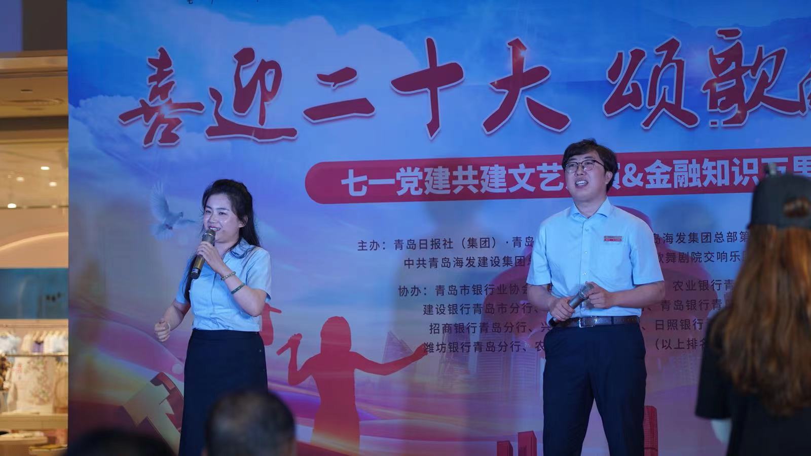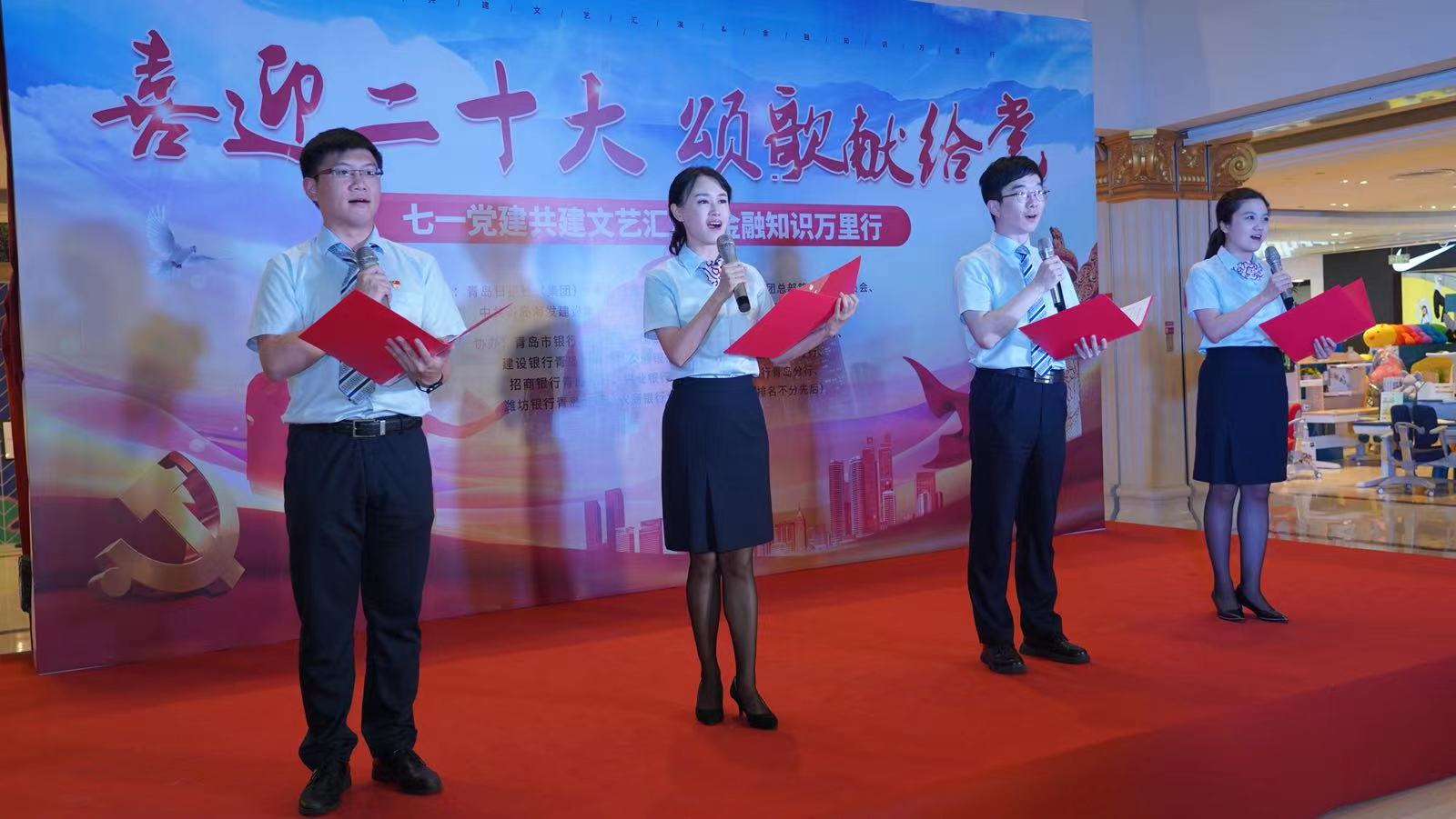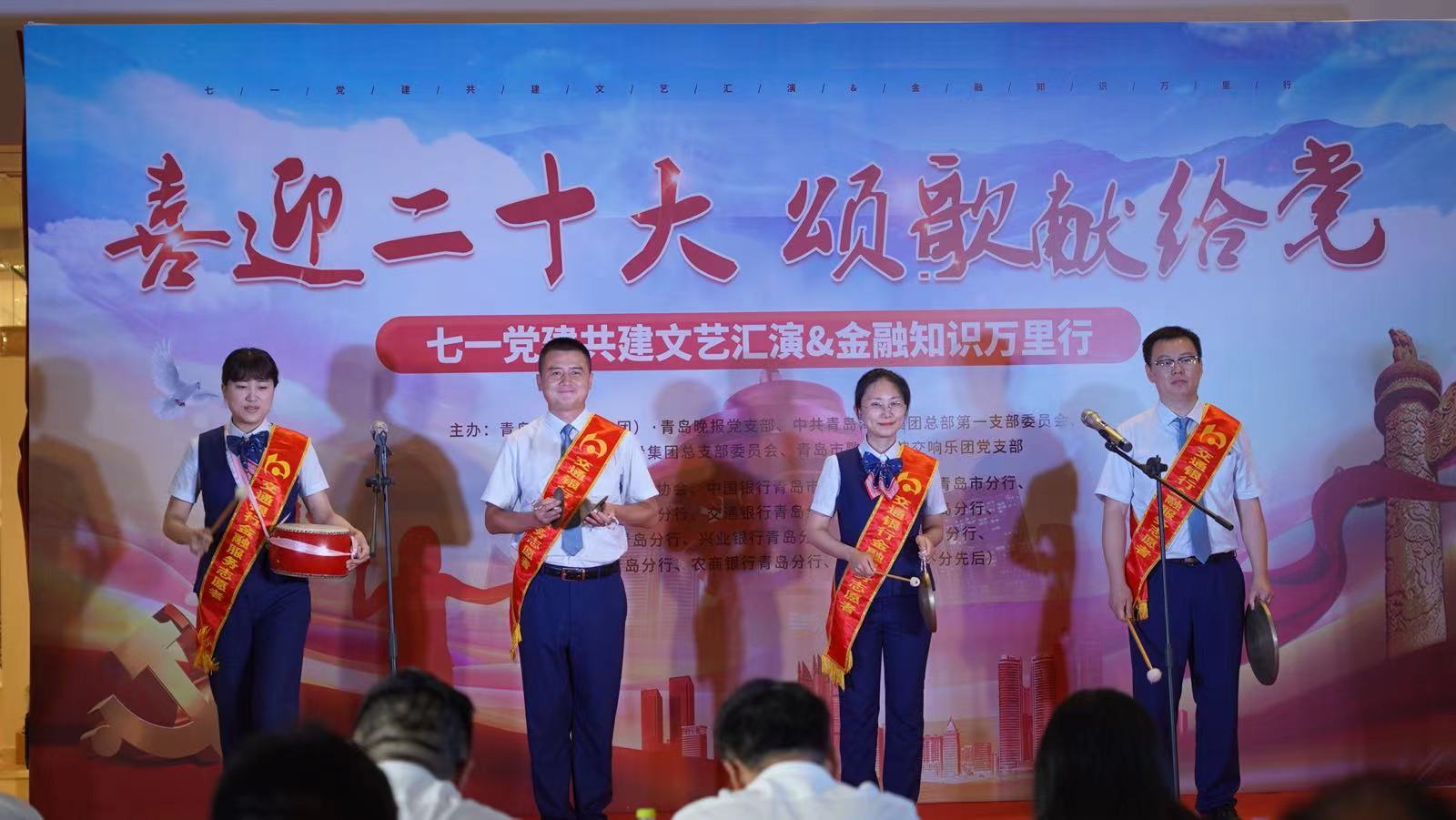 在活动现场,中国银行青岛市分行献礼“七一”的诗朗诵《青春献给党》、交通银行开发区支行带来了三句半《骗子不高明,反诈记心中》、潍坊银行带来了小提琴演奏 《alwayswithme》、日照银行的节目《万疆》,以抒发爱党情怀、普及金融知识、勇敢担当为寓意,让青春在奉献中闪光,皆是发自肺腑的心声。