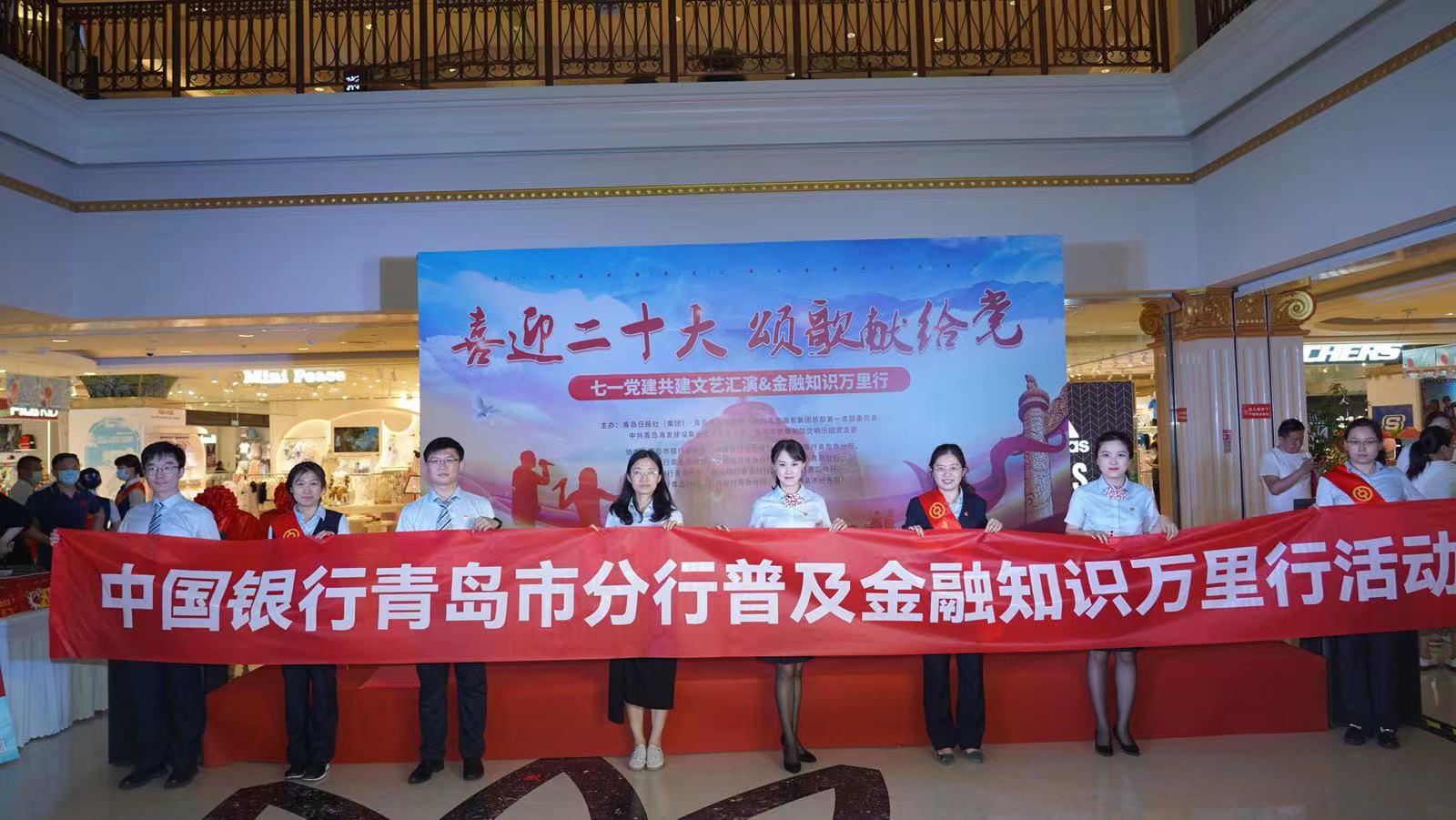 6月30日,协会与青岛晚报等四家单位在利群金鼎广场联合举办“喜迎二十大颂歌献给党”庆七一文艺汇演暨普及金融知识万里行宣传活动。十多家银行金融机构参加演出和金融知识宣传活动。
