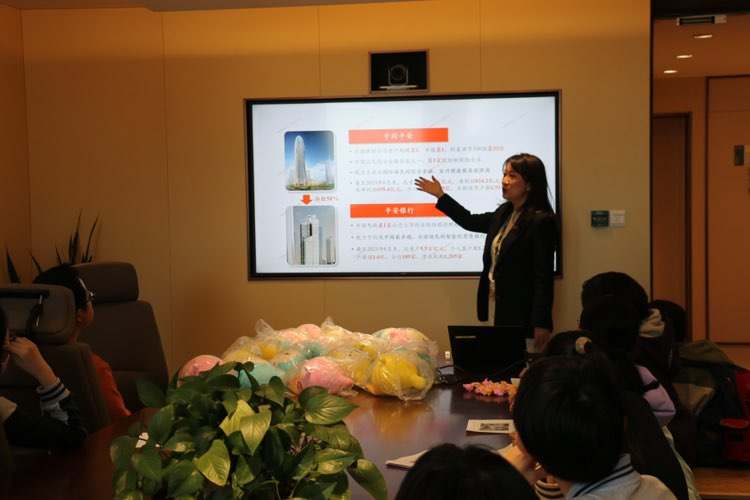 活动开始前,平安银行青岛分行私行二中心总经理王媛媛总对学生们的到来表示欢迎,并简单介绍了平安银行的发展历史、业务特色等情况。同学们参观了分行营业部一楼营业大厅,了解了银行工作的流程和相关设备,并与机器人“安安”进行了互动。