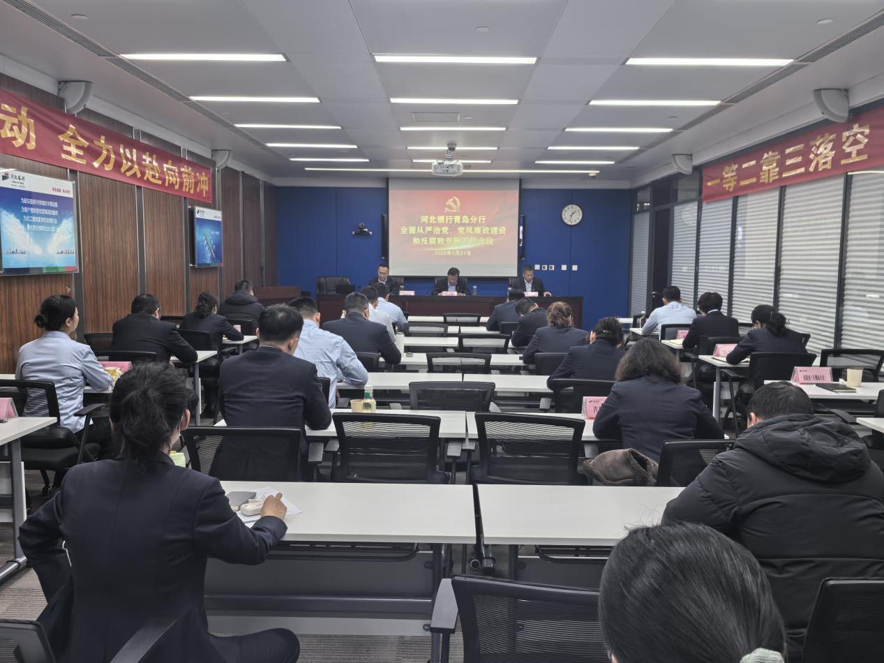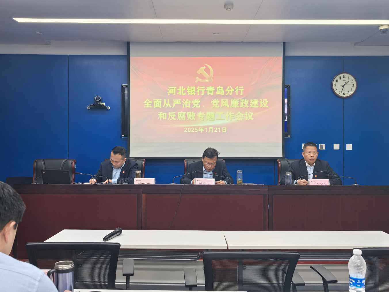 为全面贯彻党的二十大和二十届三中全会精神,深入落实二十届中央纪委四次全会精神,2025年1月21日,河北银行青岛分行召开2025年全面从严治党、党风廉政建设和反腐败工作专题会议。分行领导班子,各部门正副职管理人员、各支行、营业部正副职管理人员、各党支部书记及全体党员参加会议。