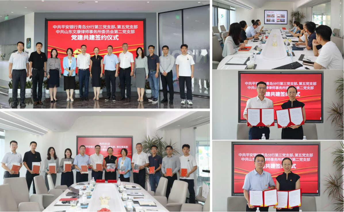 为贯彻落实平安集团“三个融入”“六个贯通”、平安银行总行“以党建促发展 以业务强党建”的要求,充分发挥党建引领作用,推动金融与法治工作深度融合,8月29日,平安银行青岛分行第三、第五党支部与山东文康律师事务所第二党支部联合举办了“党业融合 聚力同行”主题党建共建活动。分行第三、第五党支部、文康律师事务所第二党支部书记、委员、党员代表共同参与了此次活动。