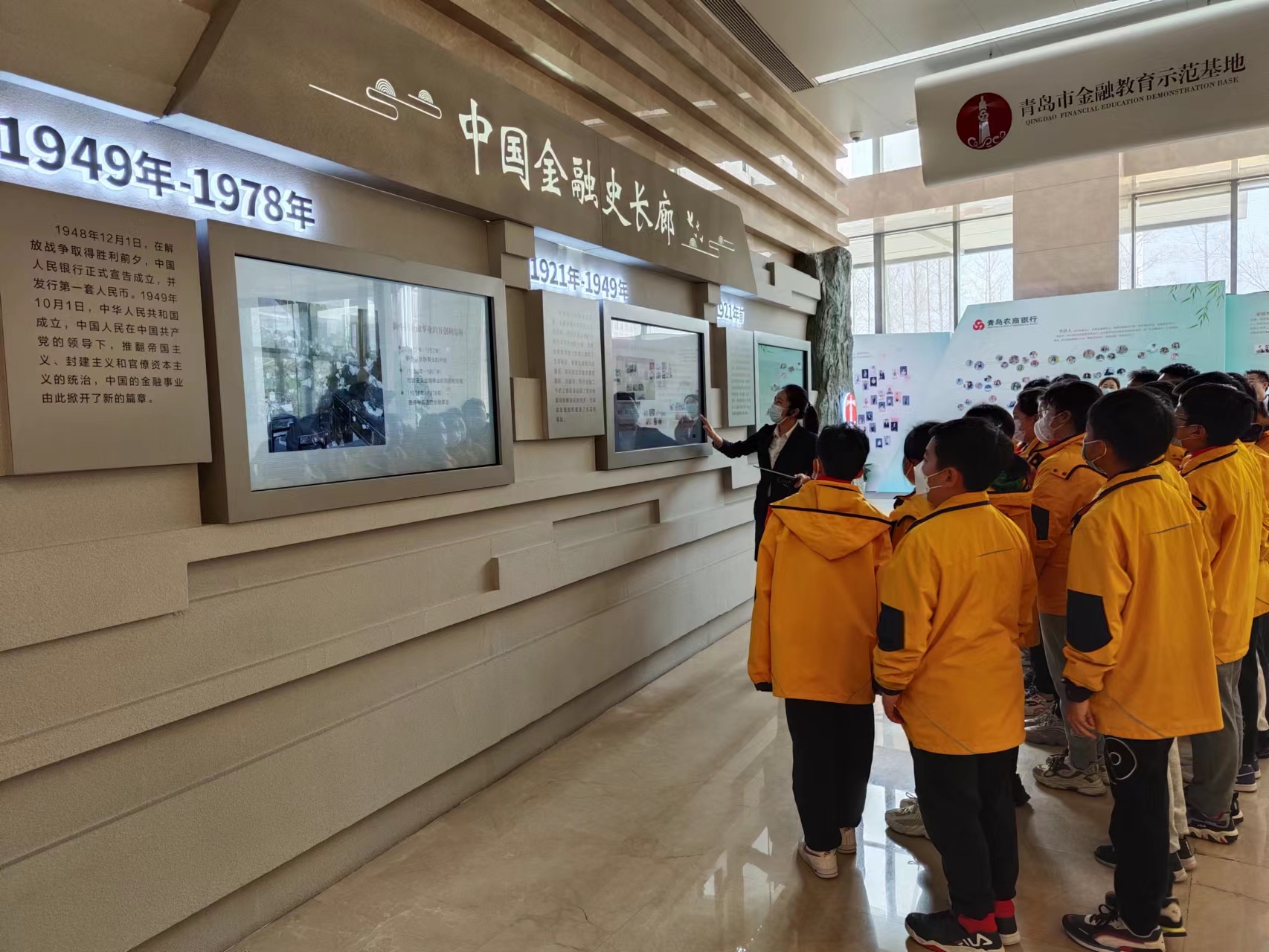 “同学们,首先我们来到中国金融史长廊,本展区通过五个板块向大家展示中国金融发展历程……”在青岛农商银行金融教育示范基地,银海学校六年级二班的同学们跟随讲解员的脚步,走进中国金融史、青岛金融史、农村金融史等展区,借助AI智慧问答、3D模拟展示等30余项现代技术,依托生动翔实的珍贵史料、实物展品追溯中国金融历史。“原来我们中国是世界上最早发行使用纸币的国家,比西方国家早了600多年啊!”短暂的实践活动中,20多位同学都感到收获颇丰。