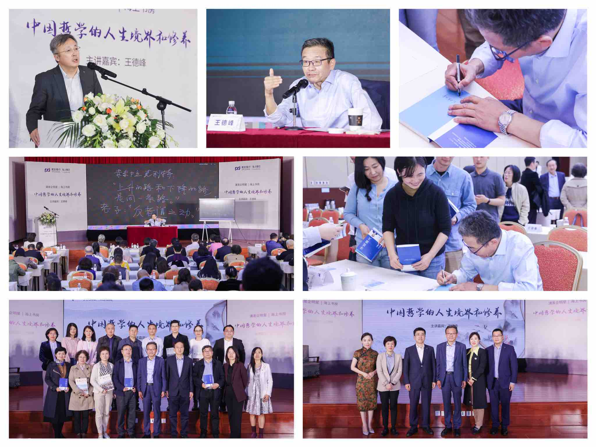 本期活动邀请到复旦大学哲学系教授王德峰做题为《中国哲学的人生境界及修养》的主题分享。王教授细心讲解了中国哲学是人生哲学及其实践功夫、中西方哲学差异、“儒、道、佛”三家的思想精髓和中国人“出世-入世”的安身立命之道等内容,并佐以生动案例,深入浅出的分析和诙谐幽默的语言得到了客户高度认可,全场笑声和掌声不断。活动结束后,王教授进行现场签书,众多粉丝客户排起了长队,现场气氛热烈。