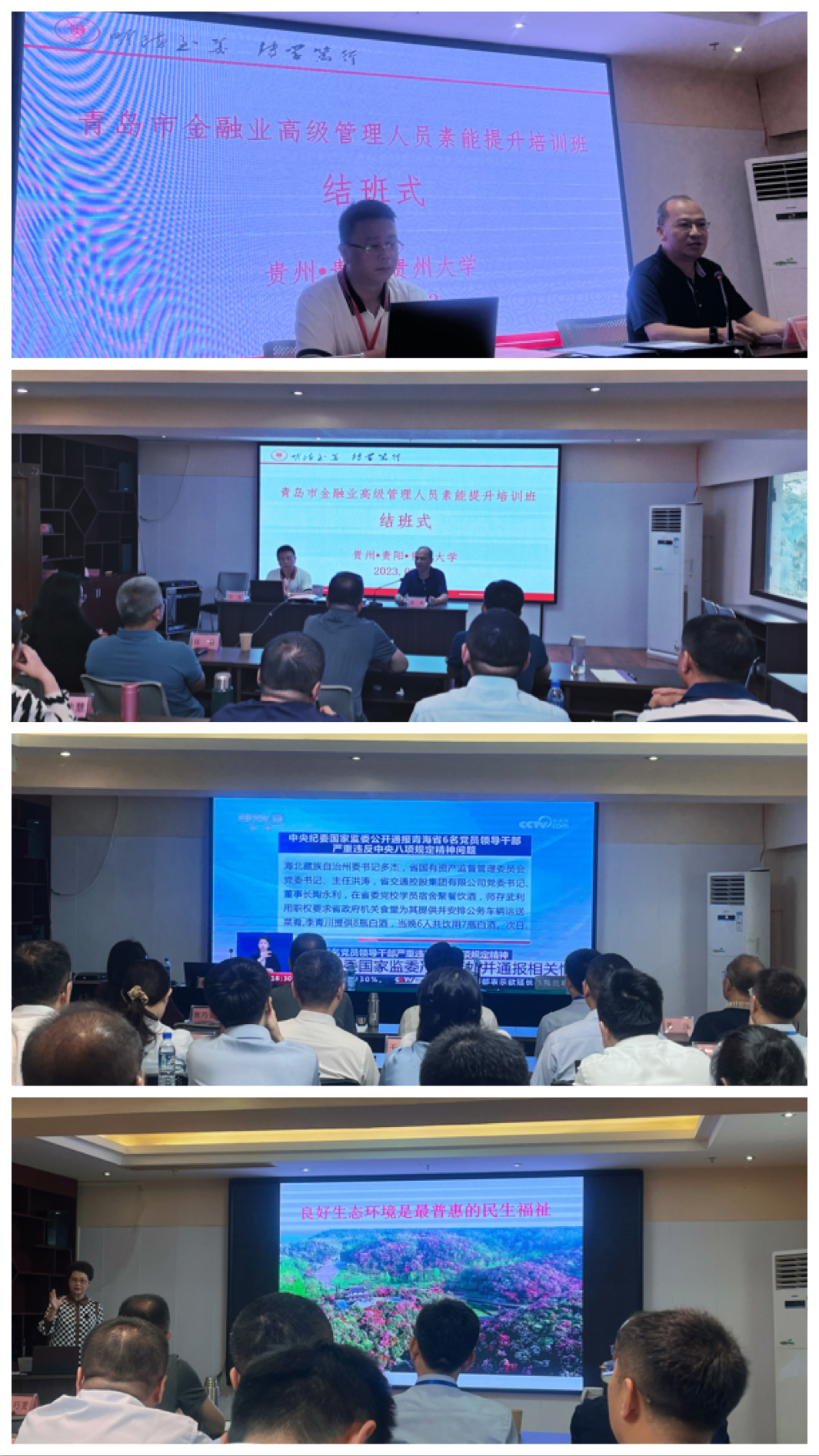为准确把握党中央对金融工作提出的新要求,紧跟当前经济形势与经济热点分析,进一步提升青岛市银行业中高层管理人员的综合素质和管理能力,7月31日--8月5日,由青岛市银行业协会组织、贵州大学继续教育学院承办的“青岛市金融业高级管理人员素能提升培训班”成功举办。
